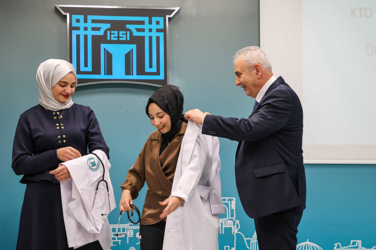 Konya Ticaret Odası (KTO) Karatay Üniversitesi Tıp Fakültesi 1. sınıf öğrencileri, beyaz önlüklerini üniversitede düzenlenen törende giyerek hekimlik yolunda ilk adımını attı.